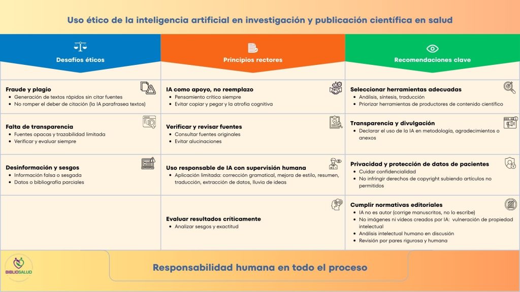 Además refuerza la idea de que la IA debe ser una herramienta de apoyo y nunca puede sustituir el juicio profesional ni la responsabilidad científica. Una práctica sencilla que contribuye a una ciencia más transparente, responsable y acorde con los valores del ámbito de la salud.