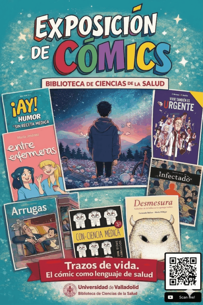 En la Biblioteca de Ciencias de la Salud hemos hecho una selección de obras para esta exposición, pero contamos con muchos más títulos que se pueden consultar «pinchando» en el siguiente enlace o mediante el código QR que aparece en el cartel principal de la exposición.